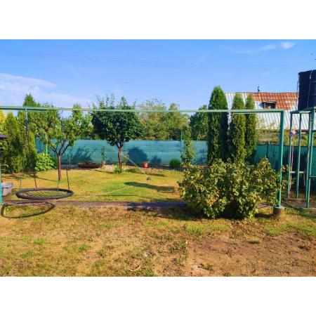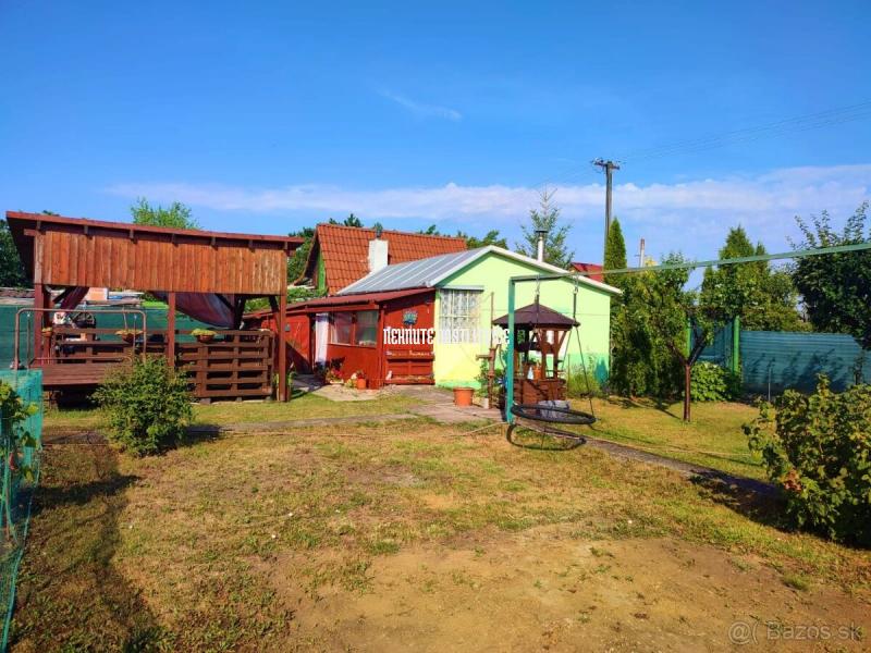 Pozemok je pomyselne rozdelený na 4 časti. V prvej sa nachádza 2 izbová murovaná chatka v rozlohe 25 m2 s pivnicou a krytou terasou, v zime s možnosťou vykurovania kachľami.
