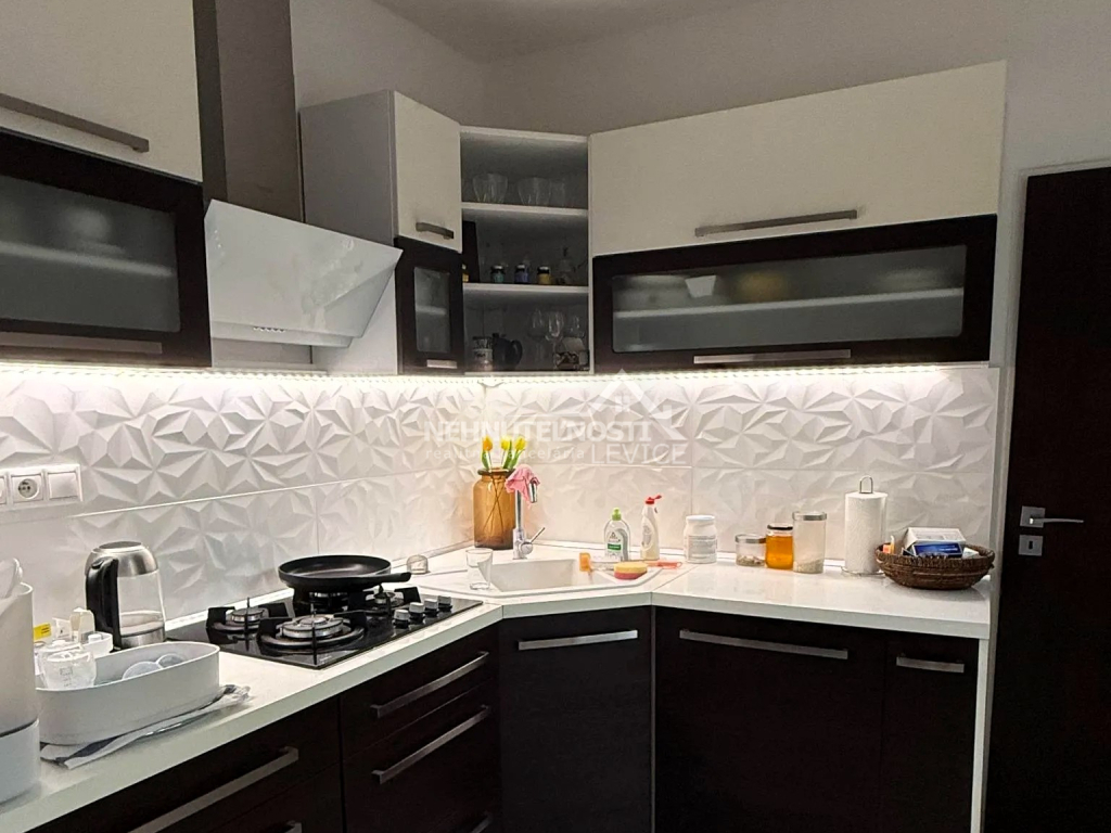 V byte nájdete novú kuchynskú linku ladenú do príjemných zemitých odtieňov, ktoré viete ľahko farebne skombinovať s ostatným nábytkom. Je vybavená potrebnými spotrebičmi, sporákom a umývačkou riadu. Výhodou bytu je prepojená obývacia časť s kuchyňou, v ktorých môžete naplno zrelaxovať, dopriať si súkromie a pohodu. V murovanej kúpeľni nájdete vaňu, práčku a veľmi vkusnú sanitu. WC je samostatné. V obývačke sa nachádza klimatizácia.