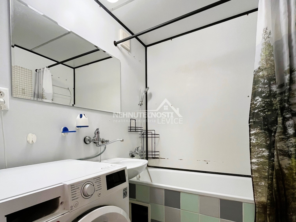 V kúpeľni nájdete vaňu a práčku. WC je samostatné.