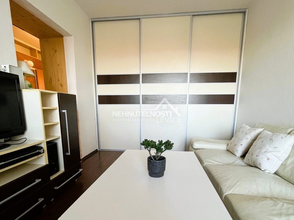 Ponúkame Vám na predaj tento pekný, kompletne zariadený a slnečný 3 izbový byt s loggiou o rozlohe 60 m2 nachádzajúci sa na 4.poschodí 7-poschodového zatepleného bytového domu, ktorý nájdete na sídlisku Vinohrady v Leviciach, ktorá poskytuje veľmi dobrú infraštruktúru. Pár minút chôdze a môžete nakúpiť v Bille. V bezprostrednej blízkosti je aj viacero reštaurácií, kaviarní, zariadení rýchleho občerstvenia, lekáreň či posilňovňa. To isté platí aj o základnej a materskej škole. Parkovacie plochy nájdete priamo pod oknami bytového domu.