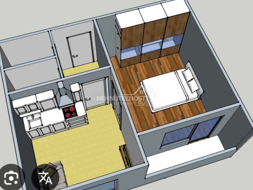 Byt pozostáva z priestrannej chodby, samostatnej toalety, kúpeľni, z chodby sa vstupuje do kuchyni a z nej sa vstupuje do izby.