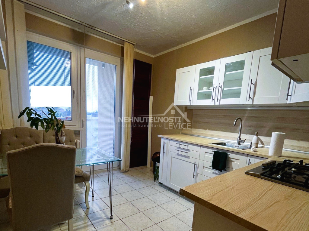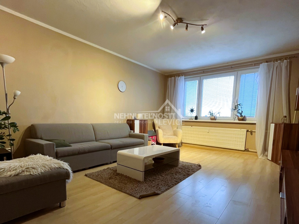 Ponúkame Vám na predaj tento veľký, pekný, slnečný a čiastočne zariadený 3 izbový byt s loggiou o rozlohe 79 m2 nachádzajúci sa na 3.poschodí 7-poschodového zatepleného bytového domu, ktorý nájdete na sídlisku R5 v Leviciach, ktorá poskytuje veľmi dobrú infraštruktúru. Pár minút chôdze a môžete nakúpiť v Bille. V bezprostrednej blízkosti je aj viacero reštaurácií, kaviarní, zariadení rýchleho občerstvenia, benzínka či posilňovňa. To isté platí aj o základných a materských školách. Zdravotnícke zariadenie – Poliklinika SANAT je vzdialená 7 minút chôdze. Parkovacie plochy nájdete priamo pod oknami bytového domu.