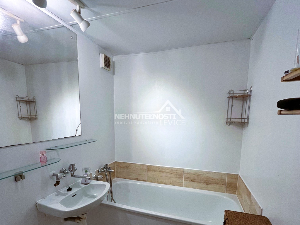 V byte nájdete novú kuchynskú linku ladenú do príjemných zemitých odtieňov, ktoré viete ľahko farebne skombinovať s ostatným nábytkom. Je vybavená potrebnými spotrebičmi. Výhodou bytu je možnosť prepojenia obývacej časti s kuchyňou, v ktorých môžete naplno zrelaxovať, dopriať si súkromie a pohodu. V pôvodnej umakartovej kúpeľni nájdete vaňu, práčku a umývadlo. WC je samostatné.