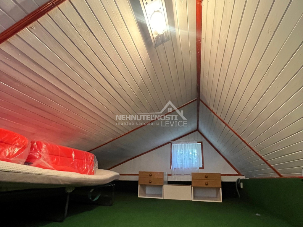 Domček pozostáva z obývačky, kuchyni, kúpeľni s toaletou a jednou podkrovnou izbou ako spálňou.