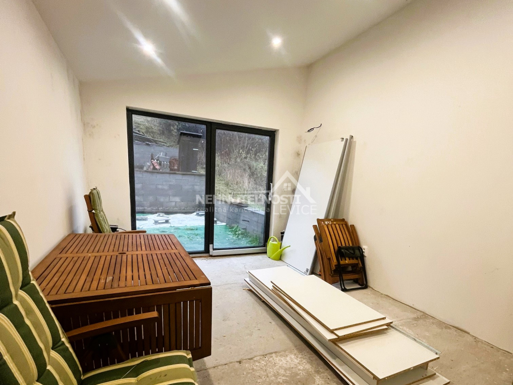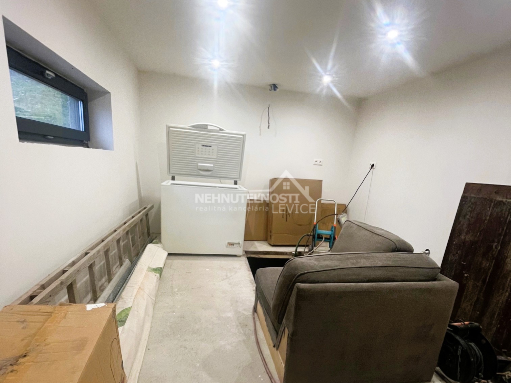 V celom dome je nové elektrické vedenie, vrátane vypínačov, zásuviek a osvetlenia, znížené stropy, kvalitné bezpečnostné vchodové dvere, plastové okná s povrchovou úpravou vo farbe antracit, izolačné trojsklá. Interiér je komplet sádrokartón vymaľovaný na bielo. Vykurovanie zabezpečujú krbové kachle na tuhé palivo a klimatizácia v hornom podlaží. V prízemnej časti sa nachádza miestnosť s prípravou na WC a umývadlo, obývacia časť s presklením a výhľadom na mesto, kuchyňa s predprípravou na vstavanú linku. Betónové schody vedúce na poschodie ponúkajú možnosť odkladacieho priestoru. Poschodie ponúka dve priestranné obytné izby, z čoho v jednej je východ na terasu do zadnej časti domu, kde je predpríprava na vonkajší kuchynský kútik. Kúpeľňa ponúka možnosť umiestnenia, alebo vybudovania sprchového kúta a predpríprava na umývadlo a práčku. Na pozemku sa nachádza studňa s vysokým rámcom vody.