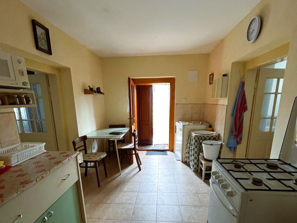 V domčeku - chalupe sa nachádza vstupná miestnosť riešená ako kuchyňa a z nej sa vstupuje do dvoch samostatných izieb, v zadnej časti domčeka sa nachádzajú 3 menšie miestnosti ako komora, ktorá môže byť využitá a zrekonštruovaná na kúpeľňu. Domček - chalupa je v pôvodnom veľmi zachovalom stave. Na dome nie je urobená kúpeľňa ani toaleta.