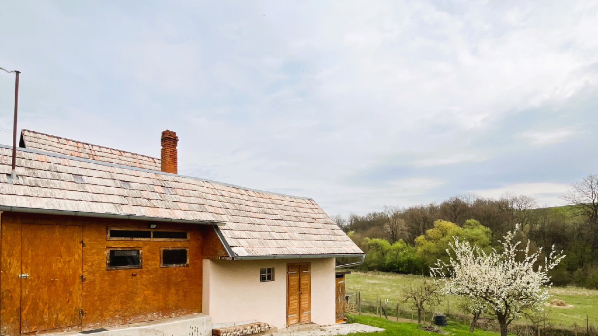 K domčeku patrí slnečná záhrada s letnou kuchynkou a drevenou miestnosťou na uskladnenie dreva.