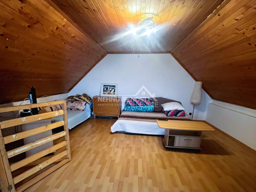 Ponúkame Vám na predaj podkrovný rekreačný domček - chalupu na slnečnom širokom prevažne rovinatom pozemku v Leviciach - v časti Staré predné Levice, kde sa aj trvalo býva.