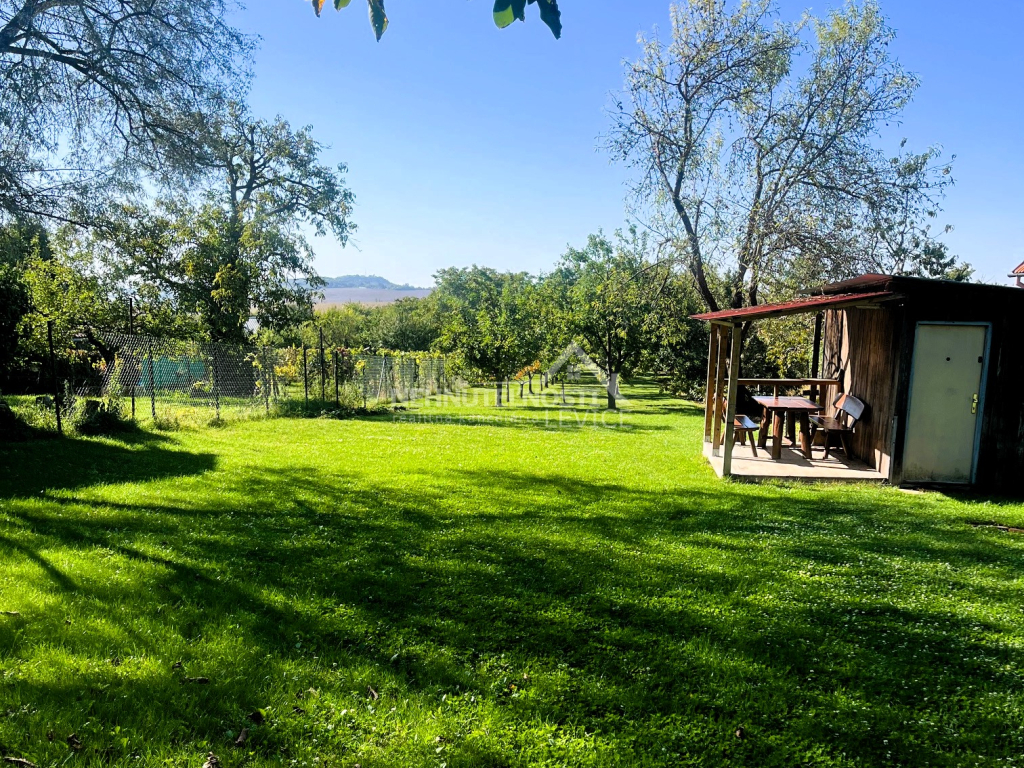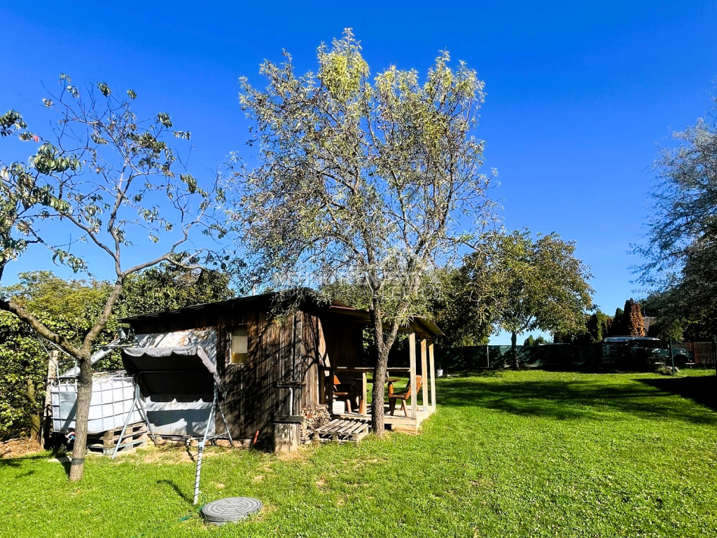 Na pozemku sa nachádza menší drevený záhradný domček vhodný na oddych s vonkajším posedením.