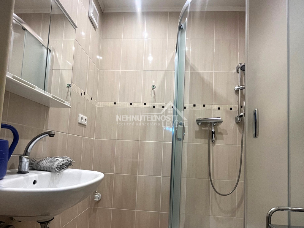 V byte nájdete kuchynskú linku ladenú do príjemných zemitých odtieňov, ktoré viete ľahko farebne skombinovať s ostatným nábytkom. Je vybavená potrebnými spotrebičmi. Výhodou bytu je možnosť prepojenia obývacej časti s kuchyňou, v ktorých môžete naplno zrelaxovať, dopriať si súkromie a pohodu. V murovanej kúpeľni nájdete sprchový kút, práčku a veľmi vkusnú sanitu. WC je samostatné.