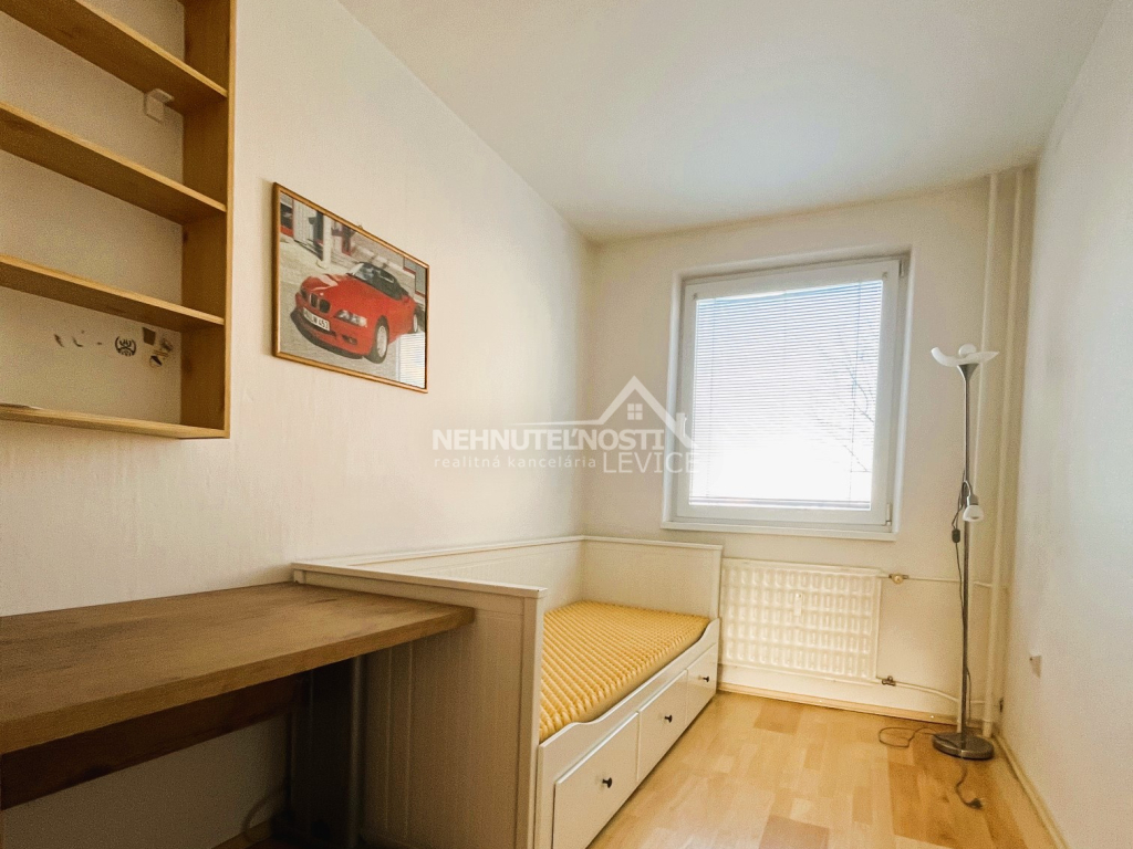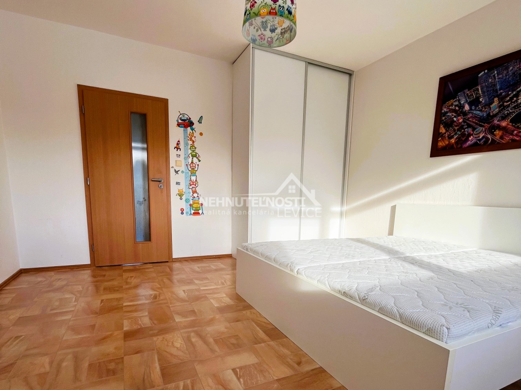 Ponúkame Vám na predaj tento pekný, kompletne zariadený a slnečný 3 izbový byt s loggiou o rozlohe 60 m2 nachádzajúci sa na 4.poschodí 7-poschodového zatepleného bytového domu, ktorý nájdete na sídlisku Vinohrady v Leviciach, ktorá poskytuje veľmi dobrú infraštruktúru. Pár minút chôdze a môžete nakúpiť v Bille. V bezprostrednej blízkosti je aj viacero reštaurácií, kaviarní, zariadení rýchleho občerstvenia, lekáreň či posilňovňa. To isté platí aj o základnej a materskej škole. Parkovacie plochy nájdete priamo pod oknami bytového domu.