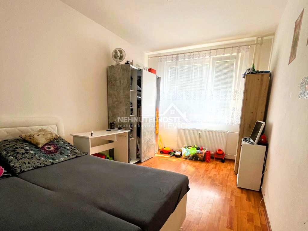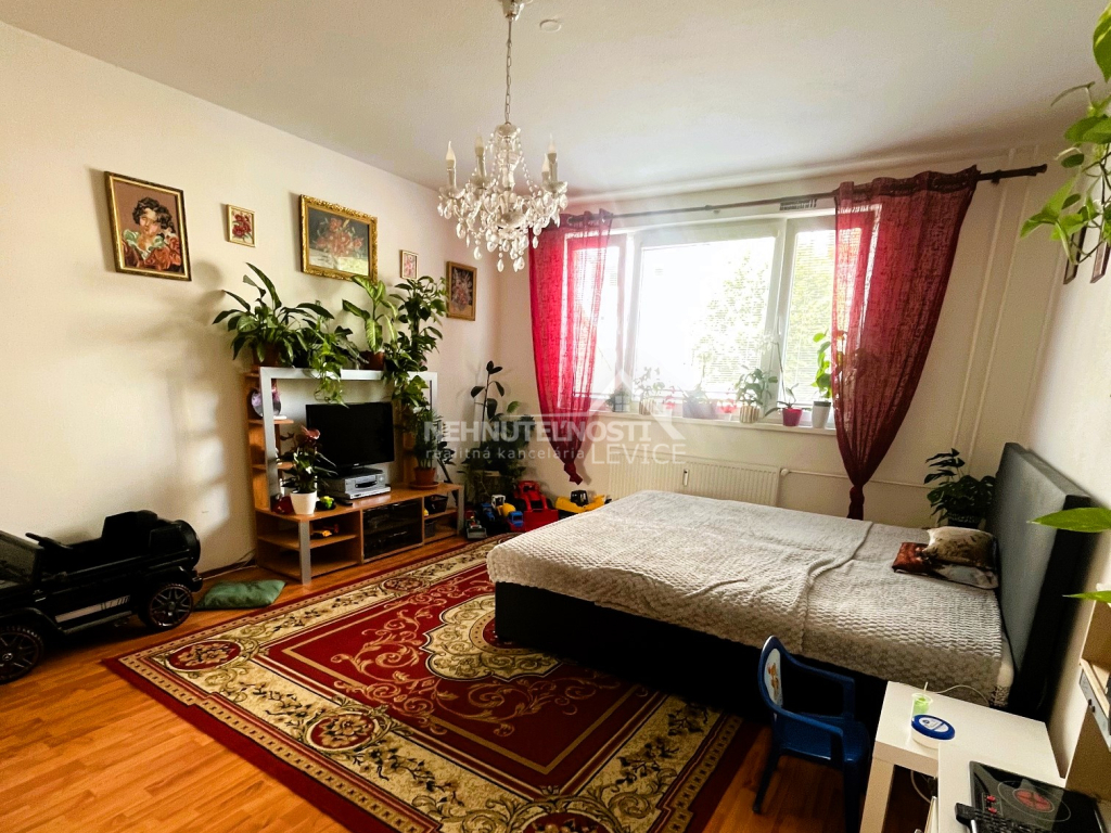 Ponúkame Vám na predaj tento veľký a slnečný 3 izbový byt s loggiou o rozlohe 77 m2 nachádzajúci sa na vyvýšenom prízemí 7-poschodového bytového domu, ktorý nájdete na sídlisku R5 v Leviciach, ktorá poskytuje veľmi dobrú infraštruktúru. Pár minút chôdze a môžete nakúpiť v Bille. V bezprostrednej blízkosti je aj viacero reštaurácií, kaviarní, zariadení rýchleho občerstvenia, benzínka či posilňovňa. To isté platí aj o základných a materských školách. Zdravotnícke zariadenie – Poliklinika SANAT je vzdialená 5 minút chôdze. Parkovacie plochy nájdete priamo pod oknami bytového domu.