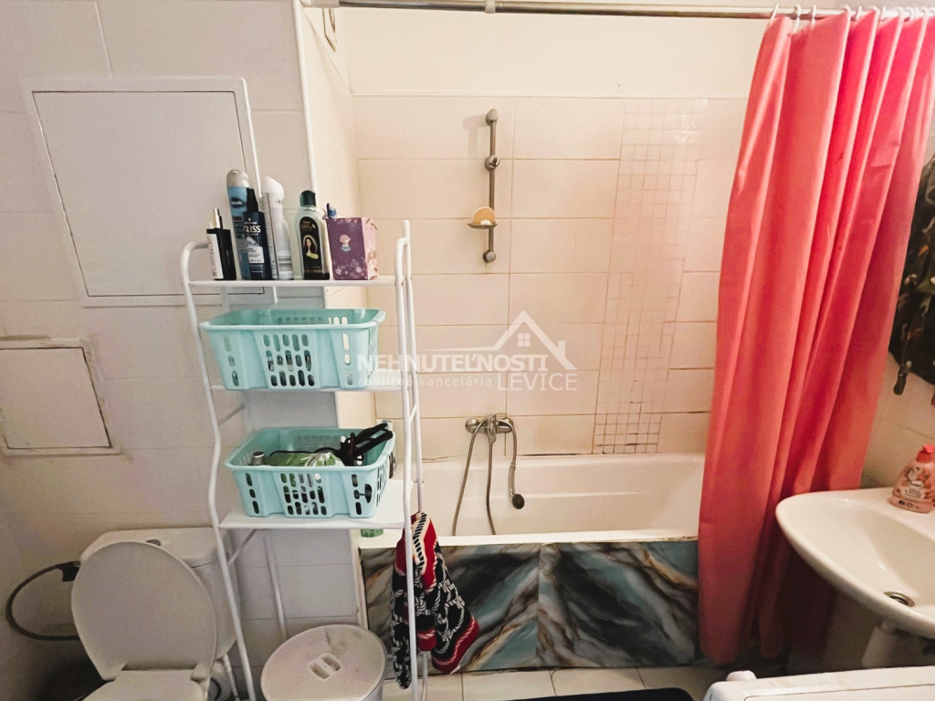 V byte nájdete kuchynskú linku ladenú do príjemných zemitých odtieňov, ktoré viete ľahko farebne skombinovať s ostatným nábytkom. Je vybavená potrebnými spotrebičmi. Výhodou bytu je možnosť prepojenia obývacej časti s kuchyňou. V murovanej kúpeľni nájdete vaňu, práčku, toaletu a veľmi vkusnú sanitu.